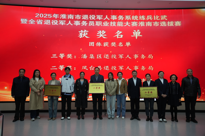 选拔赛为期1天,共有10支代表队参赛。经过激烈角逐,八公山区退役军人事务局、凤台县退役军人事务局和潘集区退役军人事务局等3个代表队分获团体一、二、三等奖;八公山区退役军人服务中心工作人员胡月月获个人一等奖,潘集区退役军人事务局工作人员谢昭群、潘集区退役军人服务中心主任陈艳获个人二等奖,凤台县大兴镇退役军人服务站负责人王利、凤台县钱庙乡退役军人服务站负责人朱忠相、寿县退役军人事务局工作人员吴敏获个人三等奖。