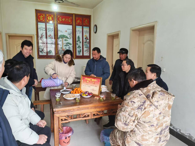 1月29日上午,冬日的暖阳洒满潘集区的乡间小道,潘集区退役军人事务局、区人武部联合平圩镇有关负责同志,专程前往现役军人刘硕家中,开展庄重简朴的送喜报活动,将承载着荣誉与敬意的三等功喜报及慰问金,亲手送到军属手中,让军人荣誉直达家庭,让拥军温情浸润人心。